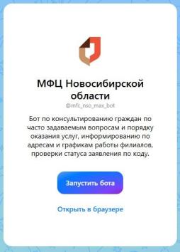 Для удобства заявителей в МФЦ Новосибирской области функционируют различные цифровые сервисы. Среди них — чат-бот МФЦ Новосибирской области на отечественной площадке МАХ.